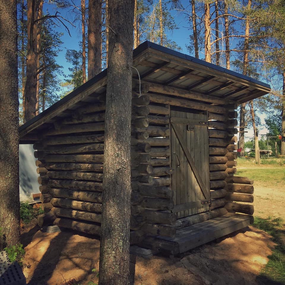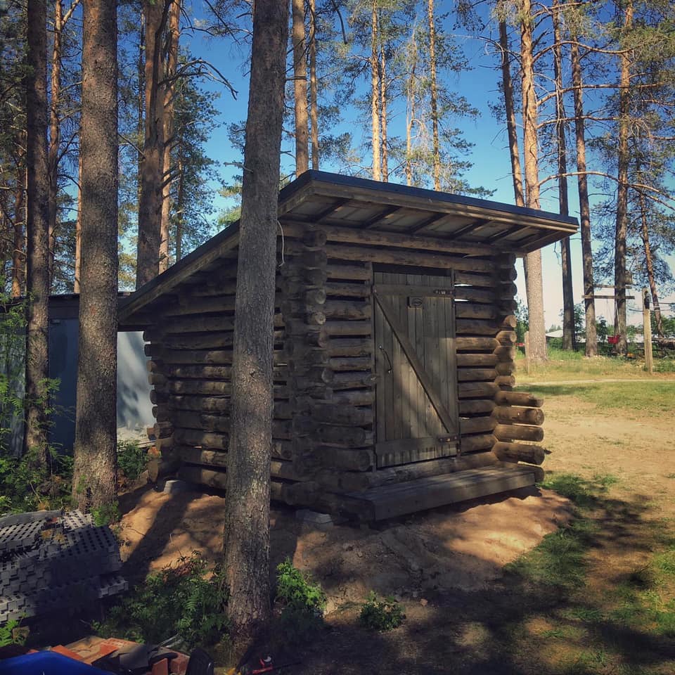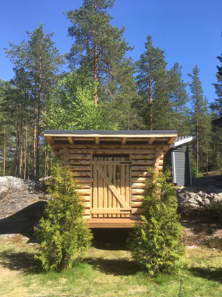 Perustoimitukseen kuuluvat kehikon hirret, lattianiskaset ja oven karapuut.